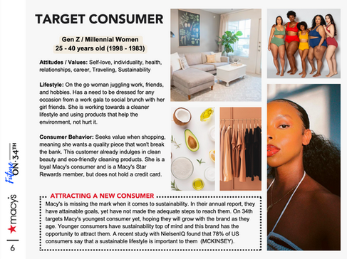 Presenting my Fashion Scholarship Fund submission, I strategically addressed Macy's challenges by proposing "Future on 34th." In response to a 6.8% decline in Q1 2023 net sales, I highlighted the potential of an exclusive, sustainable collection under Macy's Private Label brand, On 34th. This forward-thinking proposal aims to capitalize on white space in Macy's offerings, positioning the brand as a leader in sustainability while educating consumers. Witness my strategic thinking and market awareness in action as you explore how "Future on 34th" can contribute to Macy's growth in the evolving retail landscape.